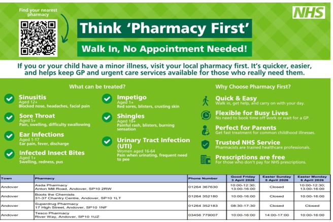 The NHS are asking people to ‘Think Pharmacy First’ if they become unwell and need treatment for minor illnesses over the Easter Bank Holiday weekend.